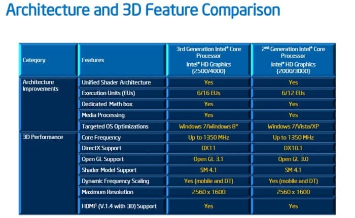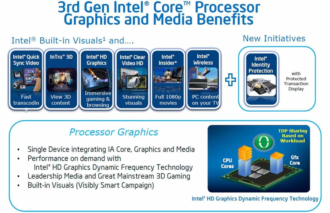 As you can see, these are the primary features which the HD 4000 GPU supports. InTru 3D, HD Graphics, Clear Video HD, Insider and Wireless Display are hardwired to support your favorite media content whether 2D or 3D as well. We’re talking about an impressive media viewing experience even over a Wi-Fi connection on desktop and mobile laptop processors. And, if you didn’t know by now, Intel Quick Sync is optimized to work extremely well with software like Media Espresso 6.0/6.5 and ArcSoft to help transcode your favorite media in seconds rather than minutes.