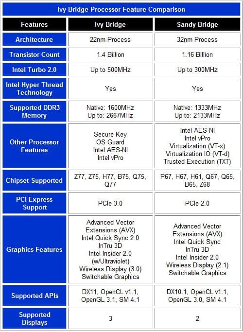 The physical differences are underneath those little aluminum CPU caps. While Ivy Bridge and Sandy Bridge offer similar features, the former is designed to speed up performance as well as add a few new features. Because the list is always changing from processor to processor, let’s break them down quickly before eating more technical jargon.