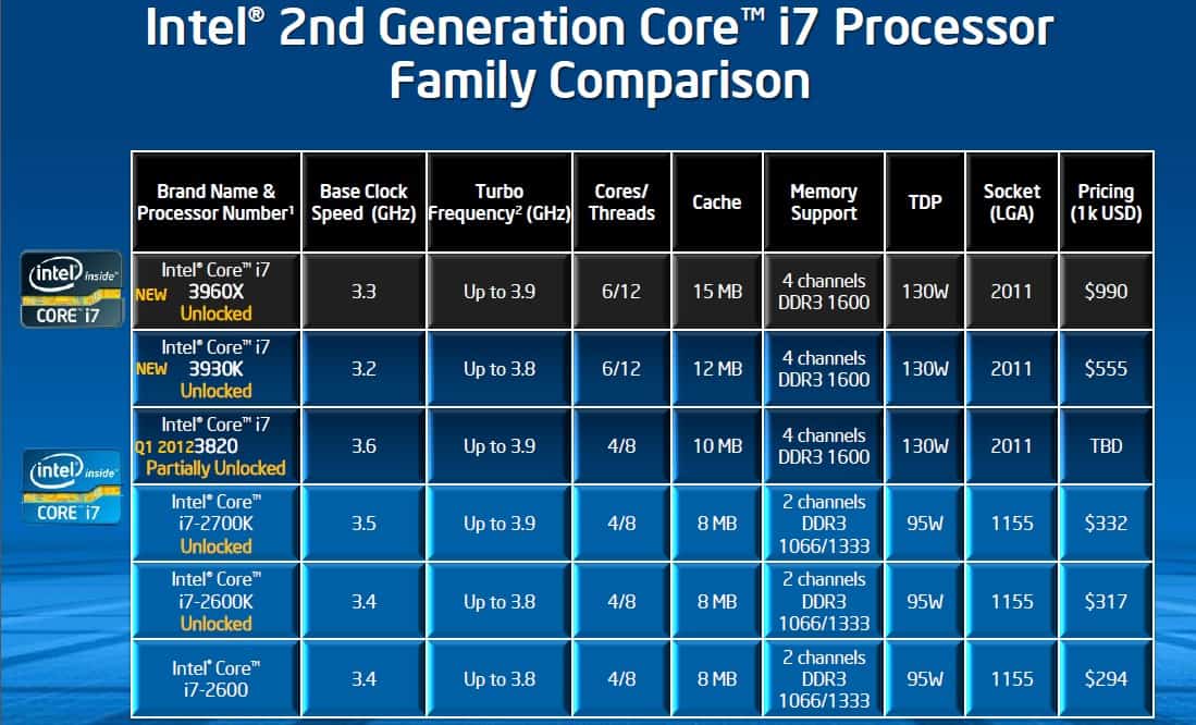 Another chip? Again? There are a lot of folks who have been trying to catch up with Intel’s processor genealogy as of late. There are plenty of online resources but it can be a little difficult for work weary consumers to digest. Have a look at the summarized comparison table below.