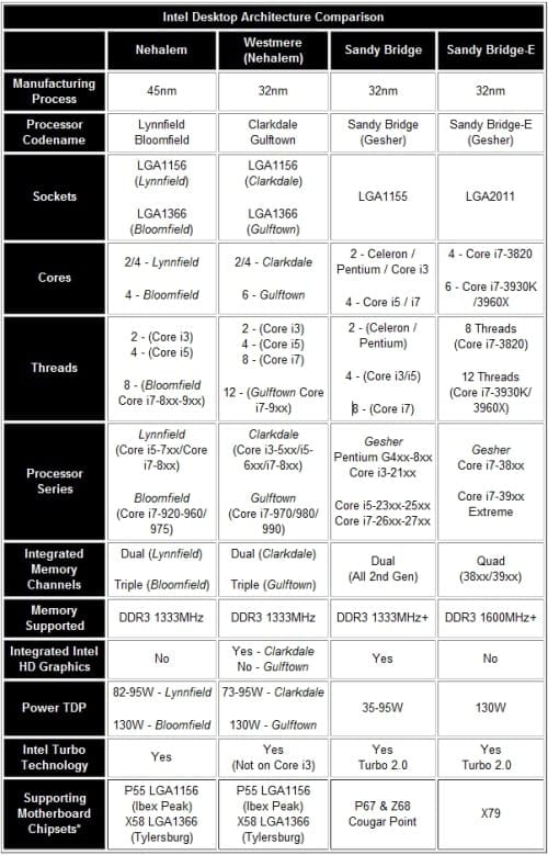 Hopefully, this clears up the LGA1156 and LGA1366 Core series processor confusion given they shared similar model names and chipsets. While most LGA1156 products are long gone, the LGA1366 processors are starting to thin out as LGA2011 Sandy Bridge-E processors take over the hex-core performance desktop market. However, the LGA1155 Sandy Bridge processors and supporting motherboards will be around well in to next year. As prices drop, it’ll still be the top choice for gaming systems.