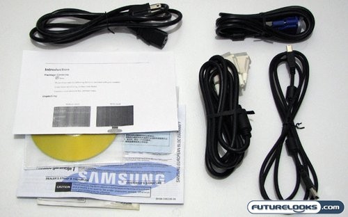 Samsung has included with the SyncMaster 2493HM pretty well everything you’ll need to connect and configure this panel. A power cable is of course included, as is a DVI and a VGA cable. They also included an A-B USB cable to allow you to connect the built in USB hub. There’s also the assorted collection of paperwork, and a CD containing drivers and software.