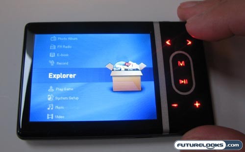 In addition to MP3 and WMA music files, this gadget also comes equipped with FM radio, voice recorder, video playback, e-book support, and a picture viewer. That’s a lot of features to pack into such a slim package. As mentioned above, there is one gigabyte of internal memory. This isn’t much, especially if you want to make use of the movie player, but thankfully you can expand that storage through the microSD slot.