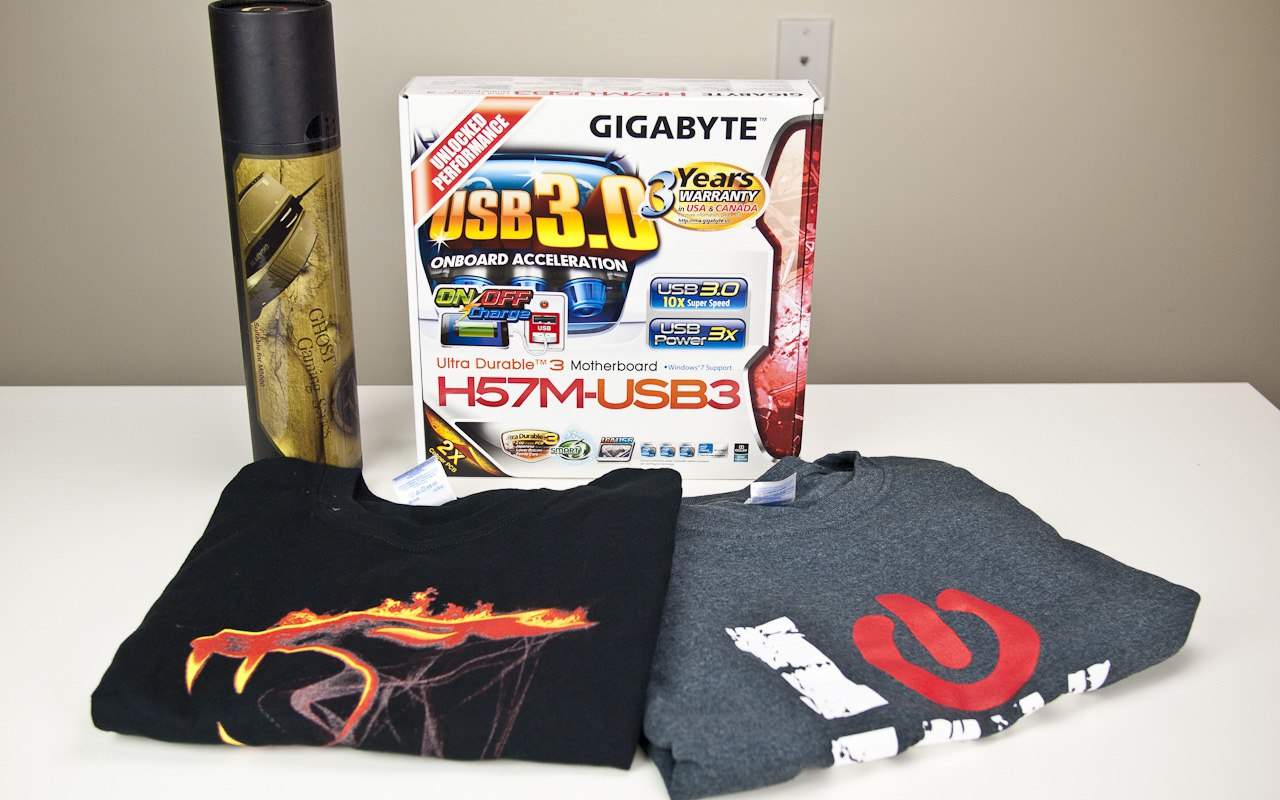 While not the most hardcore gaming board on the planet, because they make that too, the GIGABYTE H57M-USB3 makes an excellent home theatre PC foundation while the massive GIGABYTE Ghost Series Mousing Surface should help you get your frag on with ease. We’re also adding in a couple of nice T-shirts from iBuyPower and Kingston HyperX for a wardrobe change between marathon gaming sessions. But we know that you guys love to compete for bigger and better prizes, so we pushed GIGABYTE for one of these…