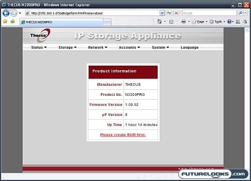 Once the hardware for the Thecus N3200PRO is installed and connected, it’s time to configure the software. This involves running the Thecus setup wizard on one of the computers on your network, or at least that’s what the instructions tell you to do. You can jump straight to the web interface to configure everything if you so desire. However this is a NAS box targeted at the home user, and it’s best to have solid documentation and an easy to configure device. Thecus does succeed in this…mostly. The setup wizard gets you through basic setup, network configuration, and some minor additional options. Then it directs you to the web interface.