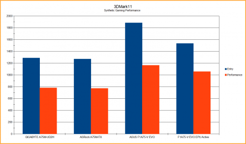 Clearly the driver update has improved the performance of the on-die GPU by a huge margin. Even when EPU mode is enabled, the F1A75-V EVO cruises past the competition. Also you should note while there is a drop in performance, I am curious as to whether it is caused by the CPU or GPU side.