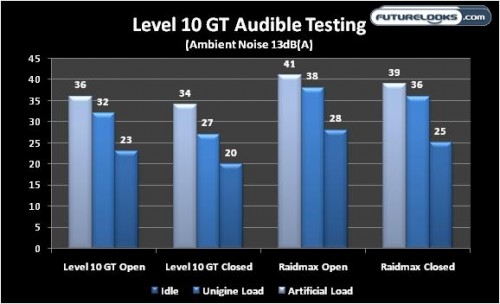 Because the temperatures are so easily managed, the CPU and video card fans only spin towards full speed during the unconventional beatings OCCT and FurMark give the system. Otherwise, the fans were at their typical 70% RPMs during Unigine Heaven Demo benchmarks.