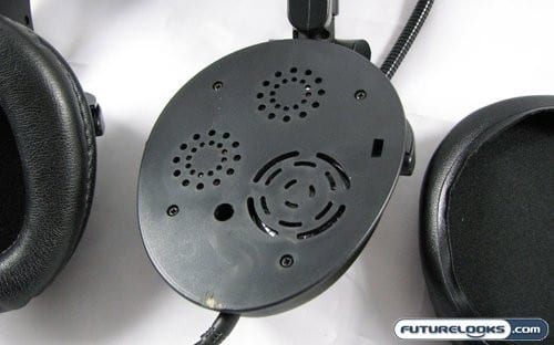 On first inspection it appears that the headset is short one speaker, until you look down the little hole and find the rim of the subwoofer behind the other three speakers. As for the ear cups, as I mentioned they are easily removable which should aid in cleaning down the road. ABS doesn’t include a replacement set, so if you rip these in any way you are stuck with the sock method of replacing your ear pads.