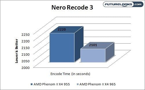 Once testing was completed (1.5 hours later since video rendering still takes time), we once again found that the 965 had pulled ahead of the 955 by a percentage close to its increase in clock speed. In this case the 965 was 5.5% faster then the 955.