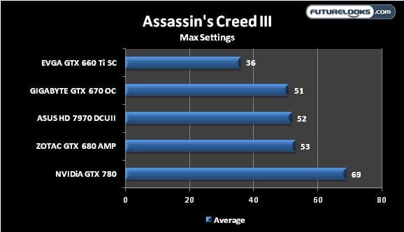 AC III is pretty amazing for this level of detailed game play. Average frame rates were combined running around the port after the opening ship scene.