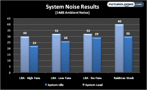 Since thermal performance was reasonable, our next step was to see what effect having mesh instead of panels would have on noise levels. Running our two torture tests, we set out to find out if the LanBoy Air could still provide a reasonable acoustic performance.
