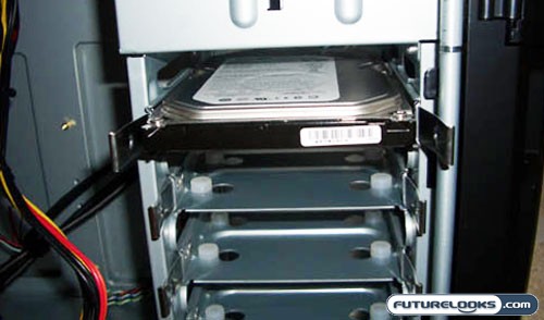 Securing the hard drive to the rail and sliding it into the bay is done easily. In my opinion, this design is far superior to other cases that orient the HD connections to the rear of the case. It also serves to keep the cables out of the interior of the case and provides for more room to allow longer expansion cards like audio and graphics cards, to co-exist.