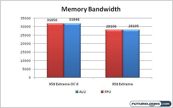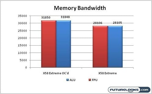 You can expect to see this kind of average memory bandwidth from the X58. If you push the memory and CPU to their utter most maximum, you’ll probably see something in excess of 34 GB/s. Just make sure you have some extra cooling around.