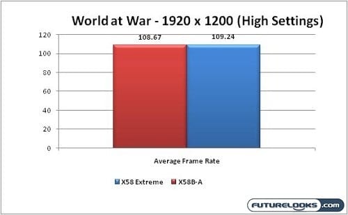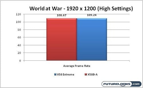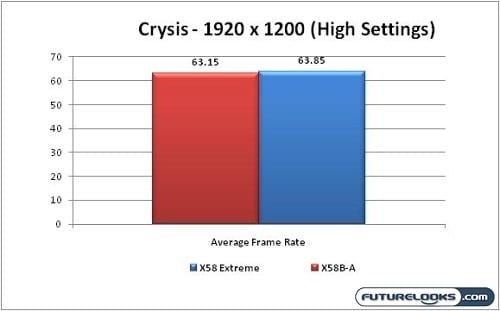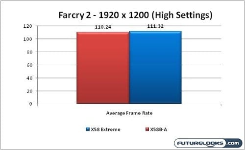 Not sure what prompted the extra frame rate here for the X58 Extreme. Farcry 2 ran smooth as glass in either case. Just make sure you keep saving along the way in game or you’ll be tossing your mouse as you start the mission all over again. As you know, the world’s are huge and there ain’t no auto save.