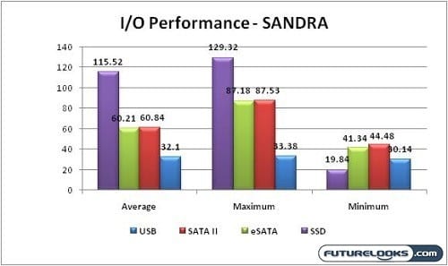In truth, this benchmark is here just to show you that the platform’s expansion features all work. Till USB 3.0 arrives, we’ll continue to see 30 to 33 MB/s. Keep in mind that more MB/s doesn’t always benefit your PC. It really depends on the applications you’re using. Just something to think about if you’re thinking about buying a $100+ SATA controller card.
