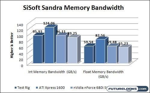 Our set of tests were conducted using SiSoftware’s Sandra testing and diagnostics suite. This suite can be used for diagnosing and repairing ailing computer components, but it also comes with a built-in set of benchmarks. These are purely synthetic, and test the raw performance of component in the most straight-forward of fashions. Selecting a motherboard-specific test was difficult, as many of the tests rely on processing speed or the performance of other sub-systems. We settled on a simple memory bandwidth test.