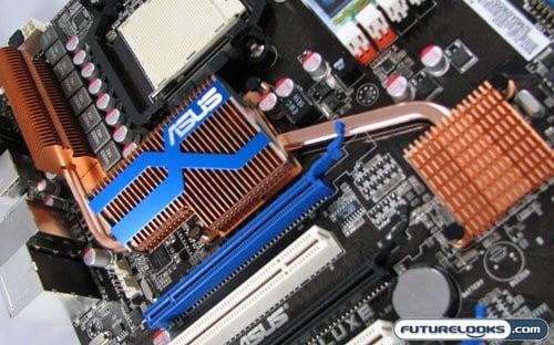 To keep all the important components that aren’t the CPU cool, Asus has implemented a rather large passive heatsink and heatpipe setup. They’ve placed large heatsinks on the MOSFETs and Northbridge, and a smaller heatsink on the Southbridge. This is a tied together using a heatpipe, ensuring that ever under the most stressful of operations everything is kept cool.