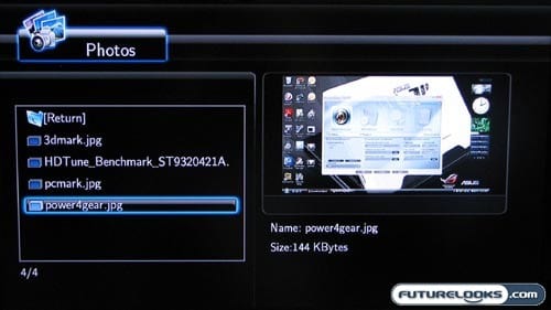 When you are browsing through videos and pictures, you actually get a preview in the upper-right window. The movie files will start to autoplay, just like on the Seagate FreeAgent Theater.