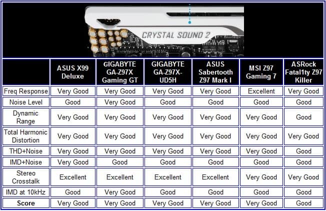 ASUS set the audio pace early a few years ago by putting more effort in to their ROG series which carried down to the channel boards. Z87 continued that trend making integrated audio a noiseless and slightly more impressive feature. Boards with amplifiers really stand out when it comes to gaming and media. That said, here’s what the X99 Deluxe does for audio.