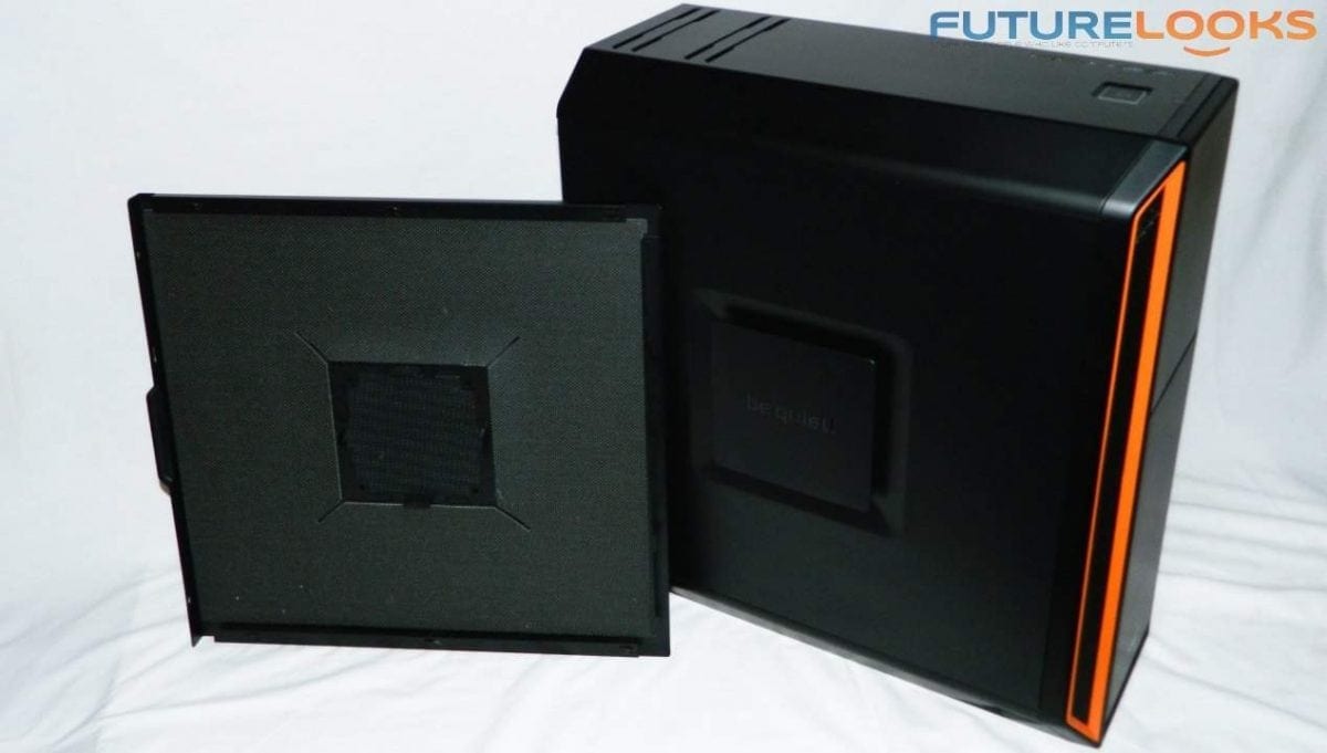 There are two square be quiet! adjustable fan cover inserts centered on the left and right panels. Users can add a 120mm case fan to each for greater air flow. The air would hit your graphics card and back of the motherboard. Just make sure you have enough space.