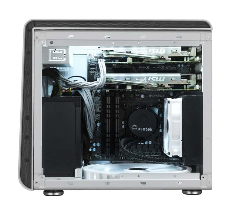 The Phenom Mini-ITX has the same interior design as the Prodigy so check out the Ultimate LAN Party Build for all the ins and outs. But it is the Phenom Micro-ATX with an all new interior layout that sets this case apart. With a taller stature, it has five PCI expansion slots, room for a CPU cooler up to 6.29 inches (160 mm) tall, and two graphics cards up to 13 inches (330 mm) in length. Like the Phenom Mini-ITX, the Micro-ATX version is customizable so you can change the layout to fit your needs.