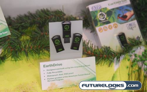 One of the things we saw that was interesting was ATP’s line of Earthdrive products. The Earthdrive product line is made of Bio-Recycled material like corn. They are fully recyclable and the finished product is waterproof for all conditions. All this while maintaining the durability, strength, looks and feel of a quality USB flash drive. I guess if push came to shove, you could eat it if you wanted to. Mmm… Crunchy…