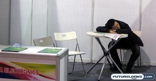 At least the rep at M & Soft, Inc. appeared genuinely interested and enthusiastic about his company’s product line. The same cannot be said about this fellow from China Electronics. What do they do? With nary a product in sight and the rep taking a nap on the job, it’s pretty hard to tell and definitely a waste of booth investment money. Check out the next page for more pictures in the photo gallery and stay tuned for just a bit more CES 2009.