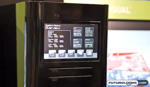 The signature feature of the Phobos systems is this touch screen control center. Unlike typical touch screens or LCD’s that you might see out there, this one contains an ARM processor and has the ability to do so much more than just tell you what’s going on with your system. The screen will actually allow you to shut off the system and turn it on in addition to all the multimedia features. Speaking of multimedia, the Phobos contains a built in iPod dock on the top of the case.