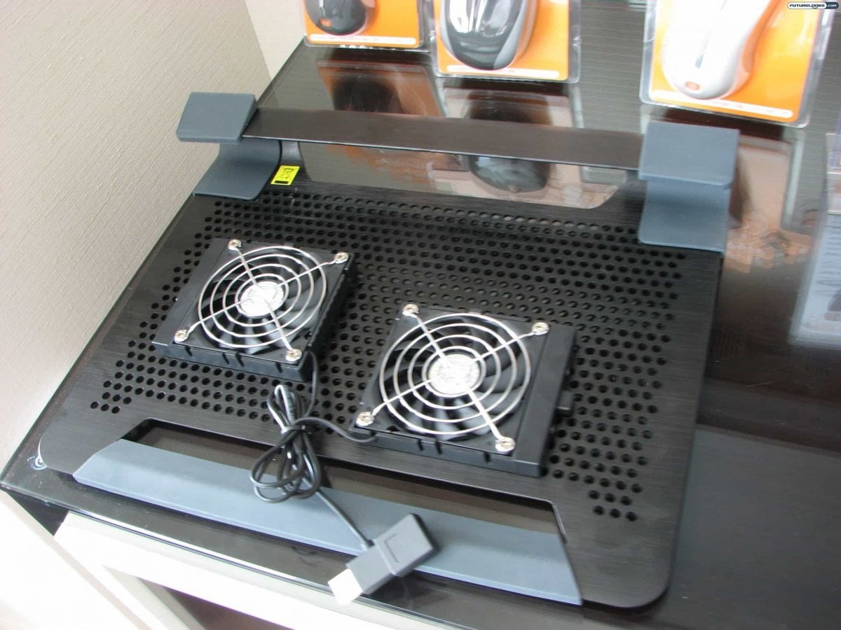 Choiix goes further with its latest notebook cooler. Featuring a brushed aluminum design, you’ll notice that the main portion has a honeycomb-like configuration. That’s there not only to help dissipate heat, but the two provided fans can be mounted just about anywhere.