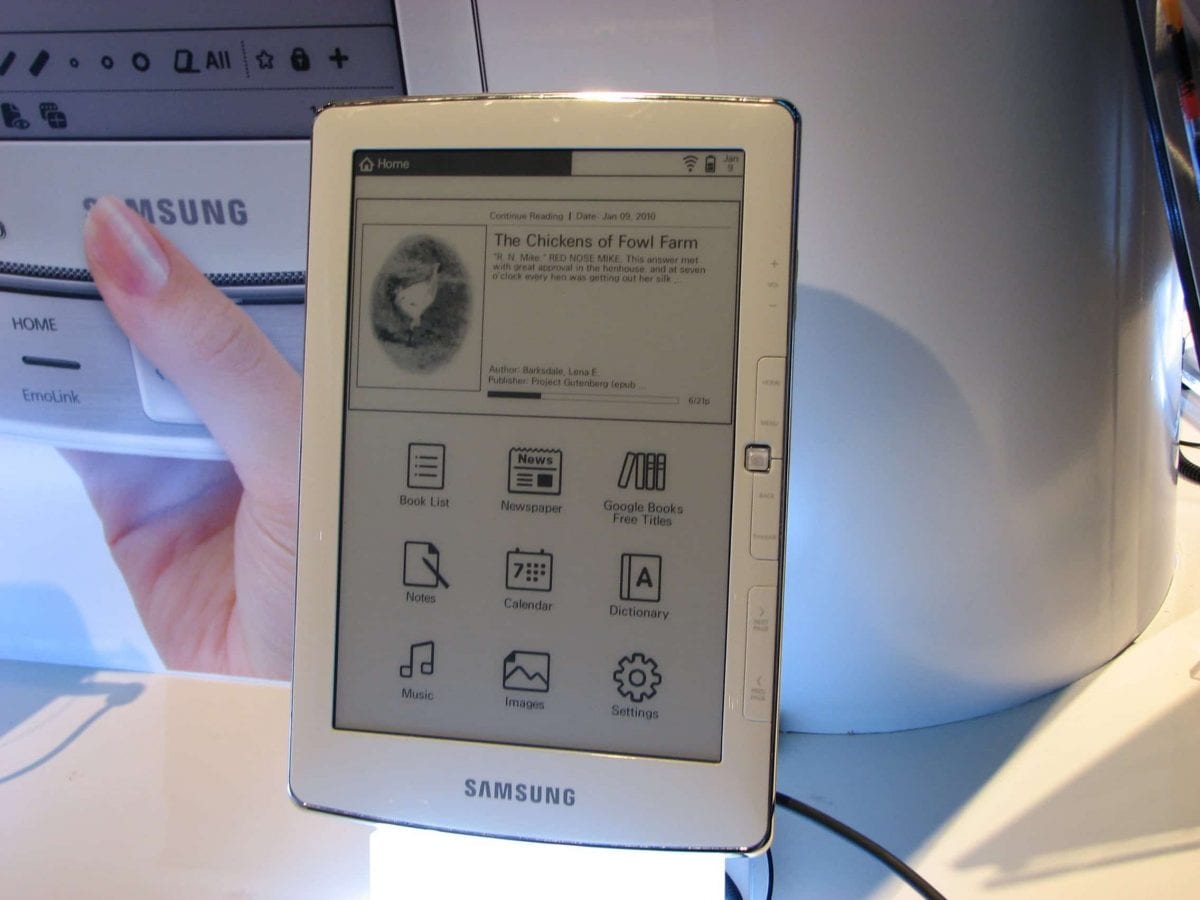 Not to be outdone, Samsung is joining the e-book reader thing with its family of e-ink devices. Whereas the Kindle and Nook use their associated online stores, the Samsung E6 and E101 get their content for free from Google Books.