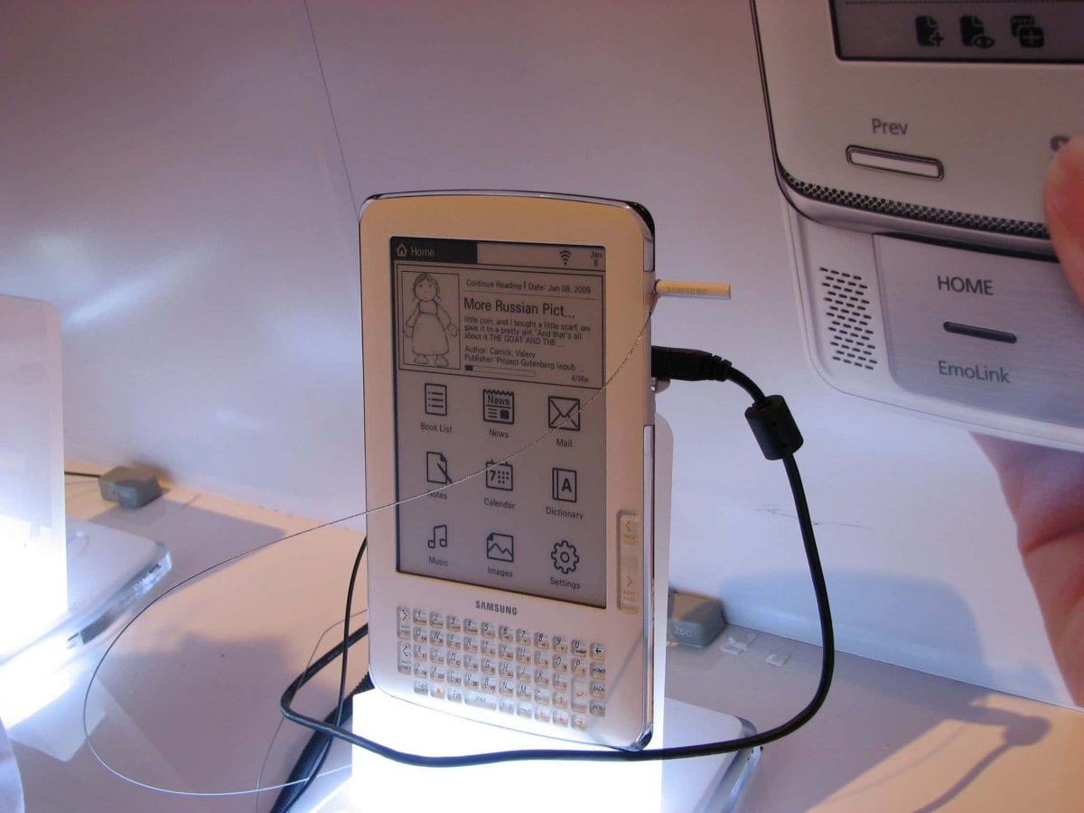 This grants owners of a Samsung e-book reader access to over one million public domain books and other kinds of content. The various Samsung e-book readers have 3G, Wi-Fi, 2GB of flash memory, handwriting functionality, and more. Some come with physical QWERTY keyboards, including one with a slide-out keyboard.