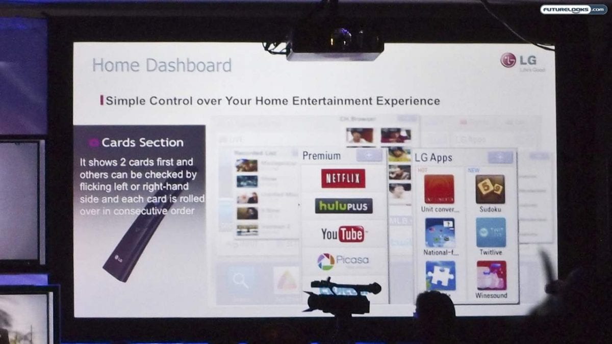 In addition to “Smart TV” products with Internet connectivity and apps, LG also offered a Smart TV Upgrader set-top box. This can convert any TV to a “smart” TV via HDMI. On the smartphone front, we saw the Optimus 2X dual-core smartphone and the Optimus Black with a 700 nit NOVA display.