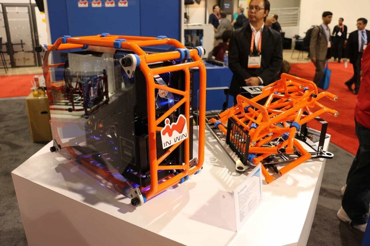 InWin (9:20) – The most surprising thing on the show floor was the new D-Frame chassis from In-Win. We’ve seen a lot of open air cases from many companies over the years, but none that looked anything like this. It looks like a cross between a high end coffee table that you didn’t buy from IKEA and a Ducati street bike with its tubular aluminum frame. Absolutely stunning!