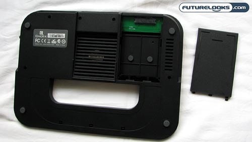 Flipping around to the underside, you’ll notice an easily accessible compartment that can house a 2.5-inch hard drive or solid state drive. The little plastic door slides off very easily, granting you access to a place where a “naked” hard drive can be housed. There are no messy cables, driver installation, or any kind of pre-configuration. You’ll just need to format the drive the same way you’d have to format any external hard drive.