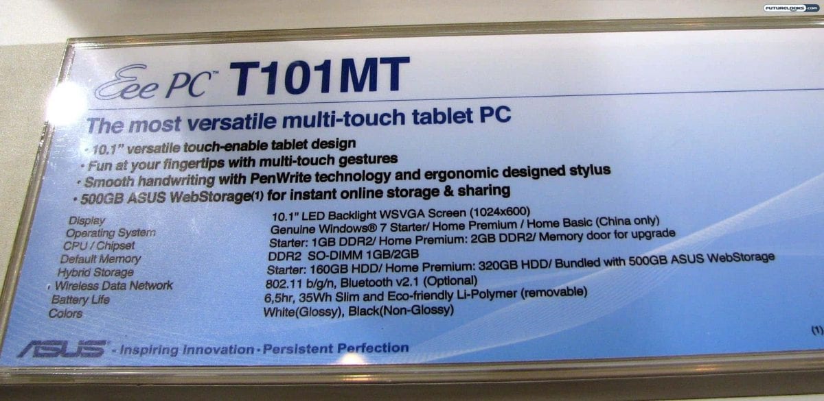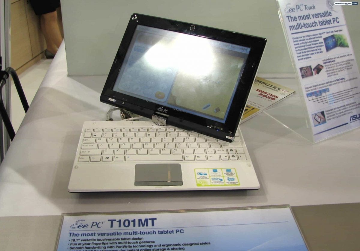 Do you remember the Gigabyte M912? Asus does that kind of thing too with its Eee PC Touch line. The Eee PC T101MT is a multi-touch tablet netbook PC with a 10.1-inch display, Windows 7, 1GB/2GB DDR2 RAM, optional Bluetooth 2.1, and PenWrite technology for smooth handwriting.
