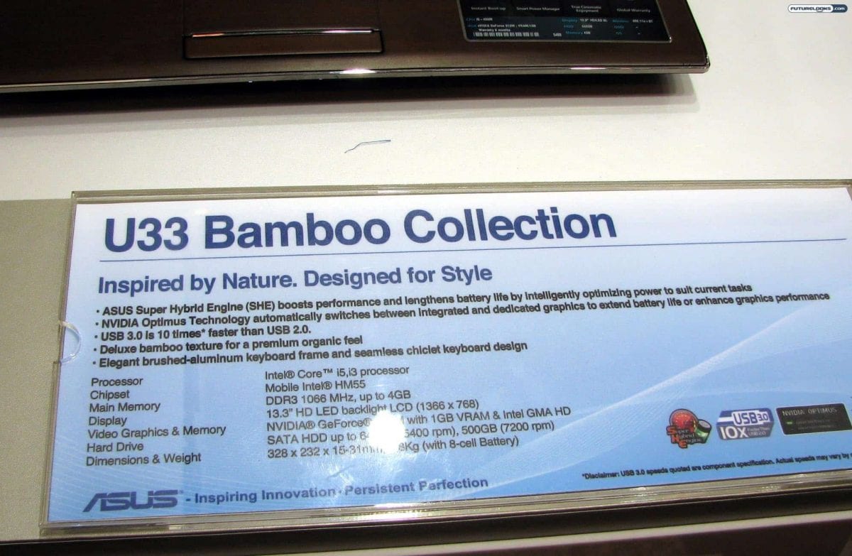 Getting beyond the bamboo, you can get the “regular” Asus U-series laptops in your choice of 13-, 14-, and 15-inch variants (U35, U45, and U52, respectively). They offer similar specs, like Intel Core processors and slim designs.