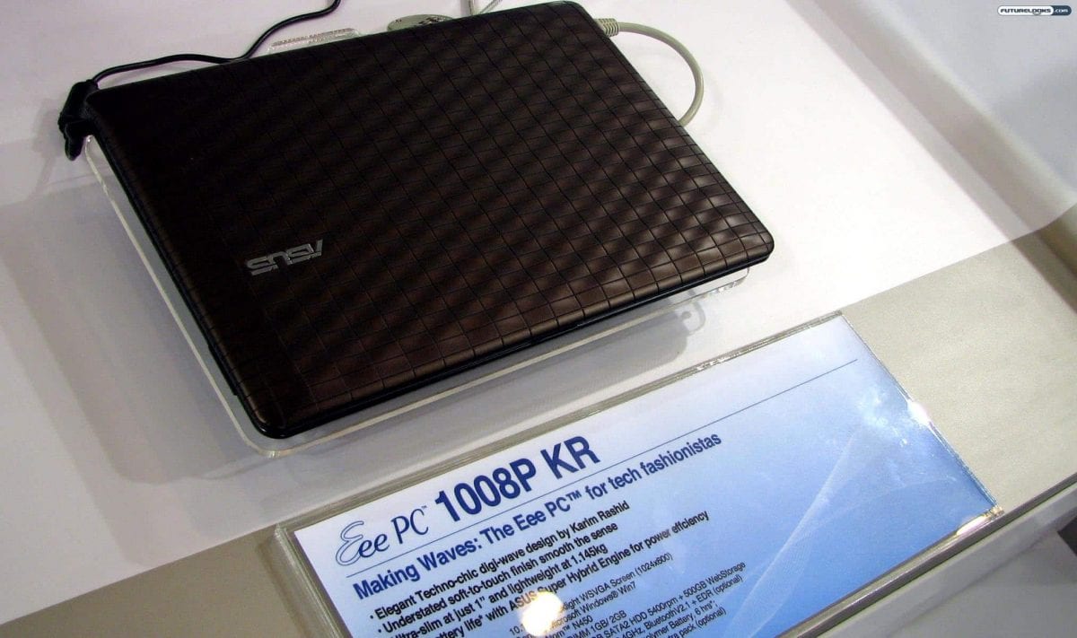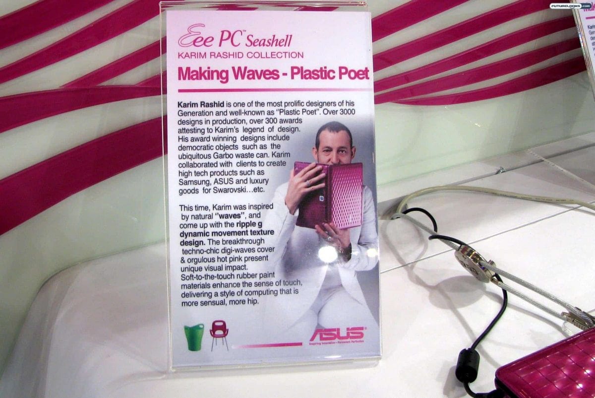 Take the Asus Eee PC 1008P KR, for instance. Even more style conscious than the Eee PC Seashell line, this collection comes by way of “Plastic Poet” Karim Rashid. The wavy texture on the lid will certainly set you apart from the other folks at the coffee shop. Expect it in pink or brown.