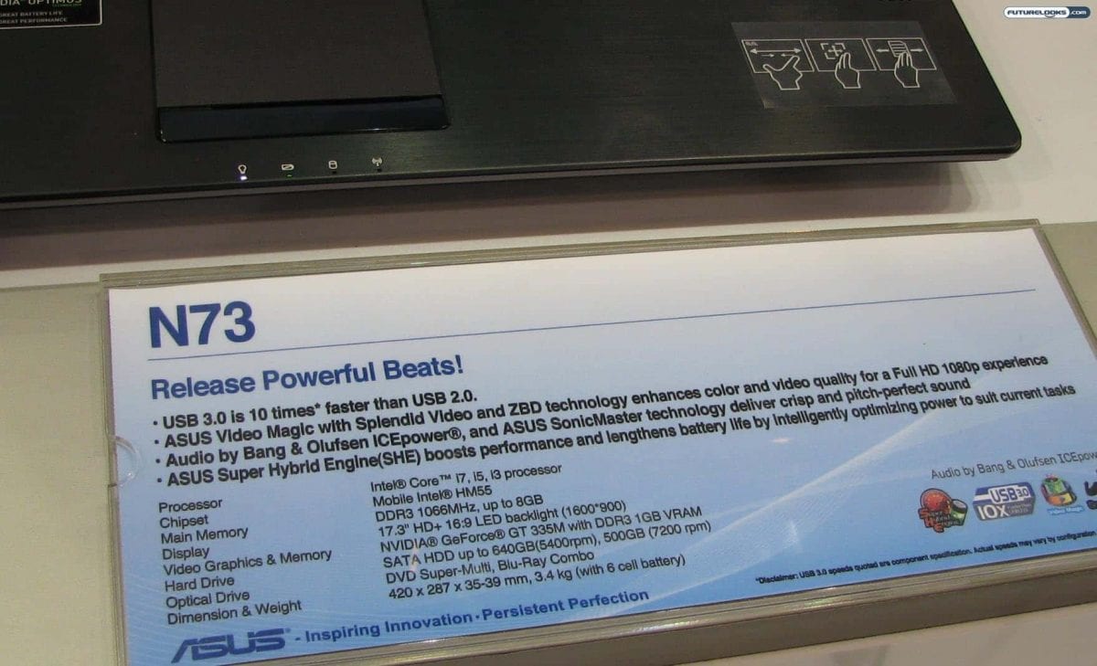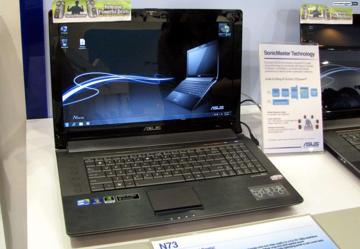 The Asus N73 has a 17.3-inch HD+ 16:9 LED backlit display, up to Intel Core i7 processor, up to 8GB of DDR3-1066 RAM, NVIDIA GeForce GT350M graphics, up to 640GB hard drive, and a Blu-ray combo drive.