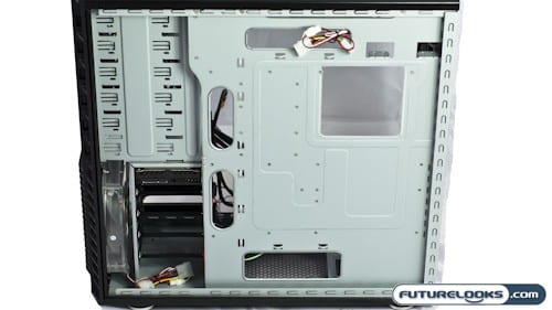 Once you pop off the thumbscrews, the case opens up to reveal a very roomy space that will accommodate microATX, ATX and most EATX motherboards. All metal edges were deburred and rolled where necessary.