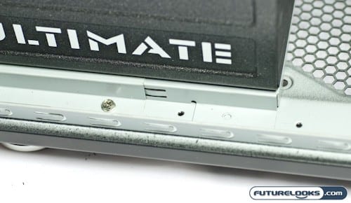 I chose to mount the power supply in the bottom of the case using the existing mounting system. Using a thumbscrew, you can slide the tray to match the size of the power supply. Unfortunately, there weren’t enough holes to really match it up to the length of our Ultimate UCP 1100W Power Supply. No biggie, but something to ponder.