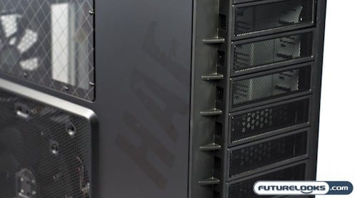 As you can see, the HAF932 has a very rugged looking exterior and is made of a mixture of steel and high impact plastic. When checking out a prototype at COMPUTEX last year, they were still calling it the “Tank Case”. I would have stuck with that name. At least it’s a bit more descriptive than HAF932. You can also make out quite a bit of swiss cheesing around the case especially in the front, top and side case panels. This helps with the HAF part of the HAF932.