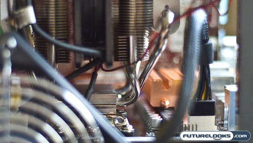 These heatpipes then extend into the four aluminum finned heatsink panels (two on each side) that resemble automotive radiators. No doubt done on purpose to perpetuate the V8 motor design angle.
