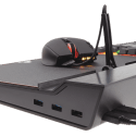 - Powered USB hub for keyboard, mouse, headset, game controllers and flash drives.