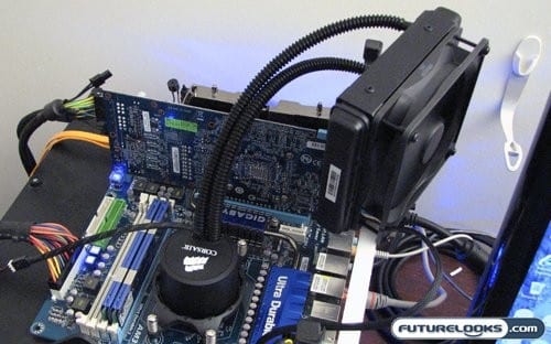 With the Intel install guide in hand, I found installation on the AMD platform to be a snap. I actually didn’t need to use the included AMD back plate, and the AMD mounting kit for the H50 works fine with the default back plate. This was nice as I didn’t need to remove the motherboard. Corsair employs this interesting system where you mount the bracket on the motherboard first, then insert the cooling unit and turn it to lock it in place. Once everything was installed, it was time to spin this thing up and see what she could do.