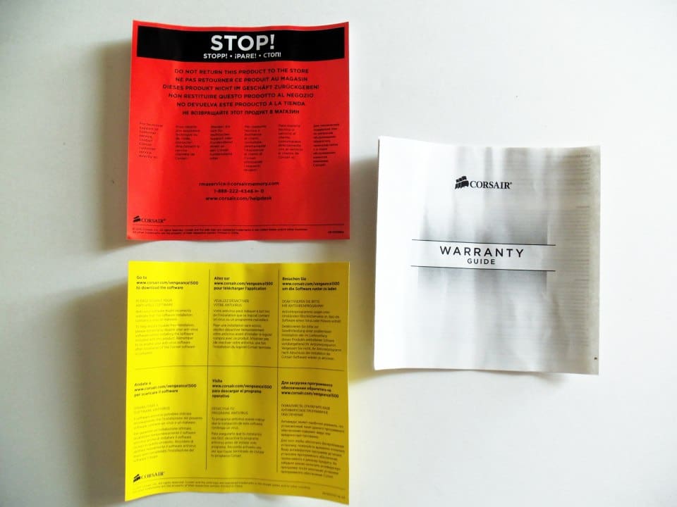 The first page is a bright red paper that simply states to contact Corsair directly for technical support or an RMA. The yellow sheet takes the place of the driver CD by providing instructions on where to go to download and install audio drivers. Finally, the white booklet is the Vengeance 1500 user’s guide. Since these small pieces of paper replace the important manual, why was it so hard to find? I will come back to why after well get a good look at the headset.