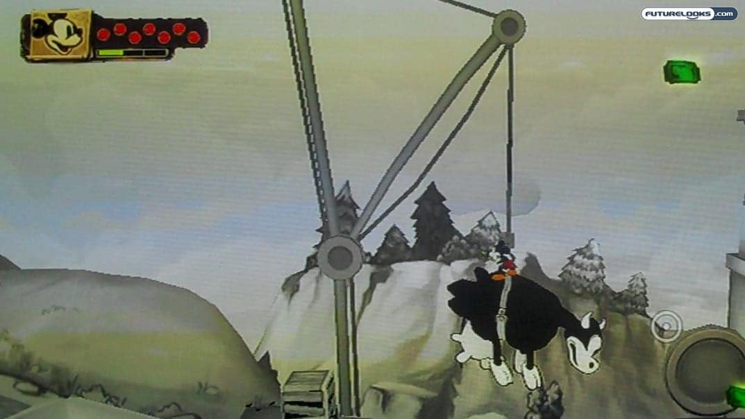 Mickey Mouse is armed with two main weapons in this newfound environment: paint and thinner. The thinner is used to “paint out” some of the cartoon elements in the stages, revealing new objects and granting you access to previously inaccessible areas. The paint can then be used to fill those areas in, allowing for more interaction.