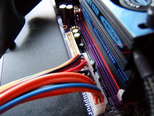Also, by the RAM, the 24-pin ATX header seemed a little too close for comfort due to the normally inflexible girth of the system power connector. The inclusion of the floppy disk header in the vicinity makes it even more cramped should one still require it.