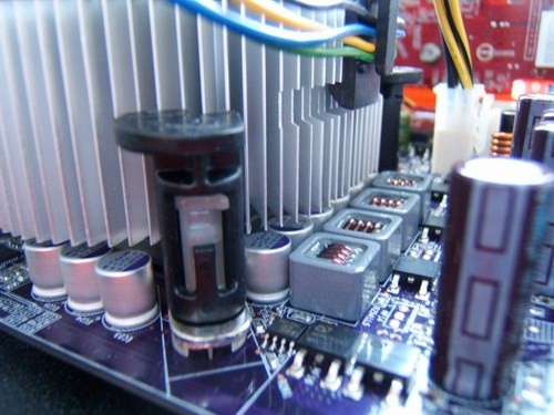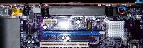 One other concern of mine is that there is a row of capacitors extremely close to the CPU socket. Although it was not a problem for the stock CPU cooler, it barely made just enough clearance to keep our stock INTEL heatsink from ramming into them. This should not be a problem for taller heatsinks that incorporate heatpipes and start getting ginormous a little higher up.