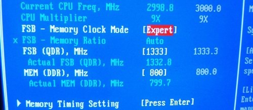 Note: Synchronous operation means that the quad-pumped CPU FSB is equal in frequency to the “doubled” frequency rate of the RAM. Although DDR2 RAM is marketed as the doubled or effective frequency, the BIOS options for the RAM are in terms of the true frequency. So for example, one might set 1333MHz as the CPU FSB. To be in synchronous operation with the RAM, the RAM frequency is entered as 667MHz instead of 1333MHz.