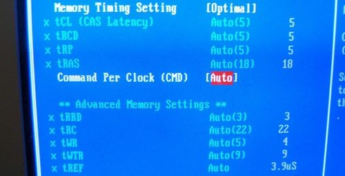 The memory on the other hand was not going to be pushed far; our set of dominator 1142Mhz RAM sticks are actually able to be run in synchronous operation at 1333Mhz FSB, but that setting requires ~2.5V. Unfortunately for us, the system would run into memory errors when we tried to run the RAM at 1333Mhz (remember, that’s two times 667Mhz because it’s Double Data Rate RAM). Even lowering the RAM speed to 1142Mhz, the BIOS would only recognize 1110Mhz, and the system still would have trouble.