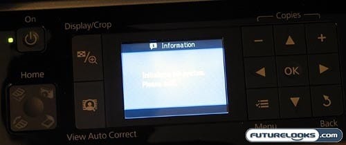 The installation and setup process was a reasonably straightforward affair. The first part of the equation involved setting up the printer itself. After plugging in the power cable and turning it on, the small 2.5-inch LCD lit up to walk me through the setup process. I set the time and date, and installed the ink cartridges. To access this area, you simply open up the flap below the flatbed scanner. The placement of the ink is very clearly marked.